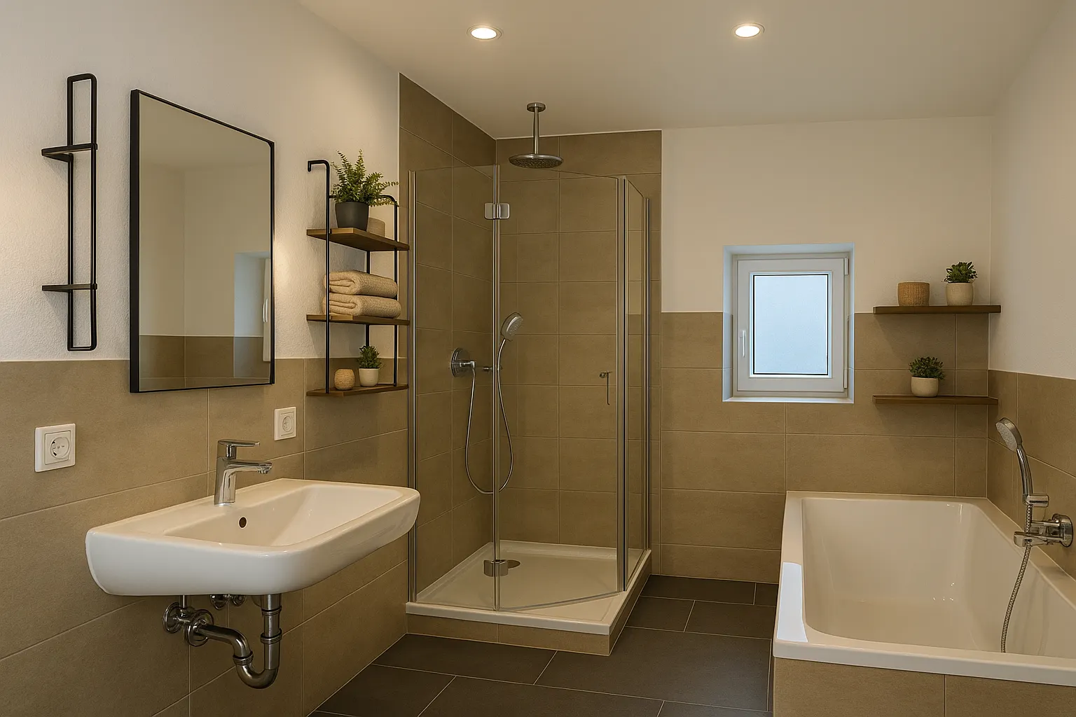 - Bad mit: Dusche, Wanne, Fenster